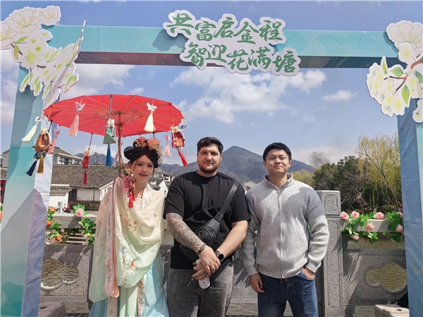 行走在古镇中,外籍船员们纷纷驻足观赏、拍照留念,不时与民警交流互动,分享到此的喜悦。来自俄罗斯的船员在镜头前竖起大拇指,开心地说道:“常年在海上航行,很少有机会这样近距离感受中国的传统文化,感谢边检民警的邀请,让我们感受到了舟山的热情与温暖,这是一次难忘的春日记忆。”并拿着手机记录下漫山李花,感慨道:“金塘的春天太美了,这样的活动让我们感受到了家一般的温暖,也让我们更加了解中国的风土人情。”